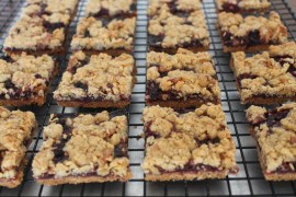 con mermelada casera de frambuesas y streusel con avena y nueces